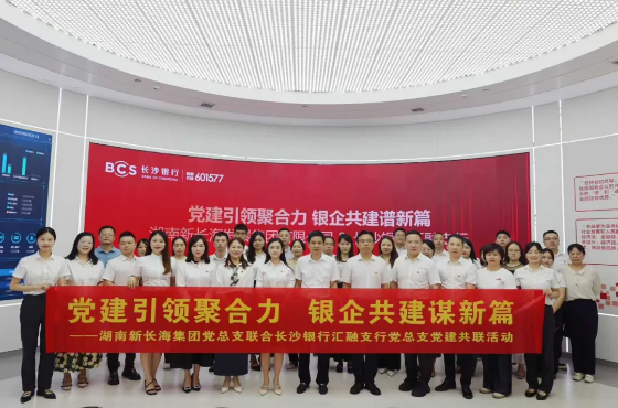 7月22日下午,"党建引领聚合力,银企共建谋新篇"党建共联活动在长沙银行总行隆重举行。新长海党员及企业代表与长沙银行党员、员工代表齐聚一堂,不仅彰显了双方在党建与业务融合领域的标杆形象,更为深化合作搭建了重要契机。