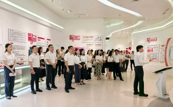 此次活动中,新长海共组织30名党员及企业代表参与,其中党员占比突出,既体现了企业对党建工作的高度重视,也彰显出扎实的党组织建设根基。活动伊始,全体人员在长沙银行企业文化中心前合影留念,随后参观了中心展厅,系统了解了长沙银行在党建引领下的金融创新成果、服务实体经济的特色实践及数字化转型亮点。规范有序的展示内容与专业细致的讲解服务,充分展现了长沙银行作为正规金融机构的深厚底蕴与责任担当。
